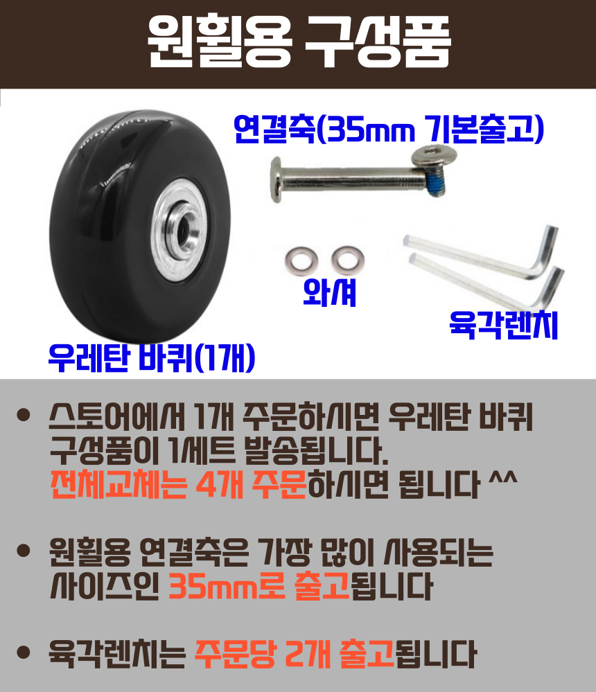 캐리어 바퀴 교체 수리 무소음 우레탄 여행가방 휠 부품, 저의 해결책